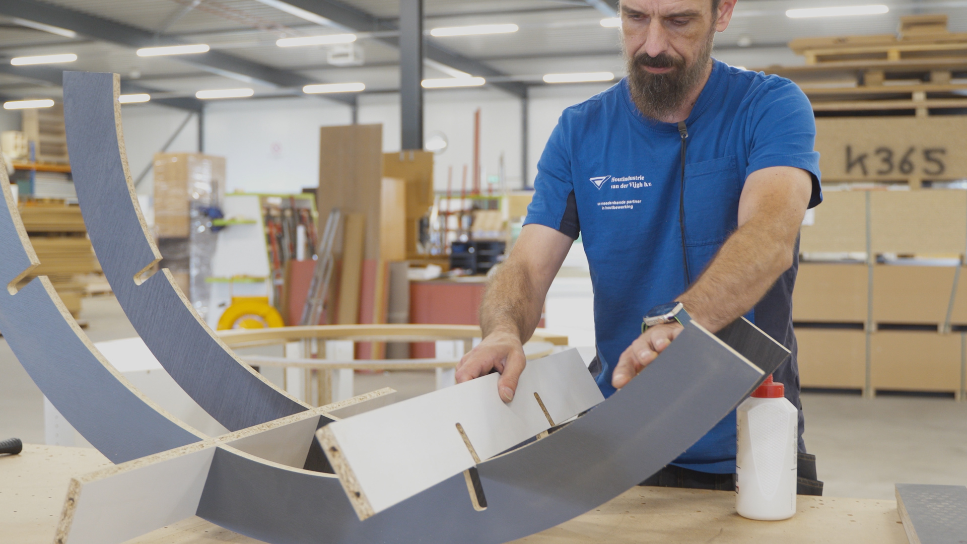 Binnen Van der Vijgh heeft Stefan een unieke rol. Hij werkt aan de zogeheten ‘specials’ – projecten die vragen om nét dat beetje extra vakmanschap. “Ik maak dingen die niet iedereen kan maken. Gebogen of schuine elementen, complexe vormen… dat vind ik het mooiste om te doen.” Het is precies dit type werk waarin Stefans ervaring, creativiteit en oplossend vermogen samenkomen. Denk aan een keuken op maat, een kantoorbalie of een tv-meubel, unieke stukken die vakmanschap en oog voor detail vereisen.